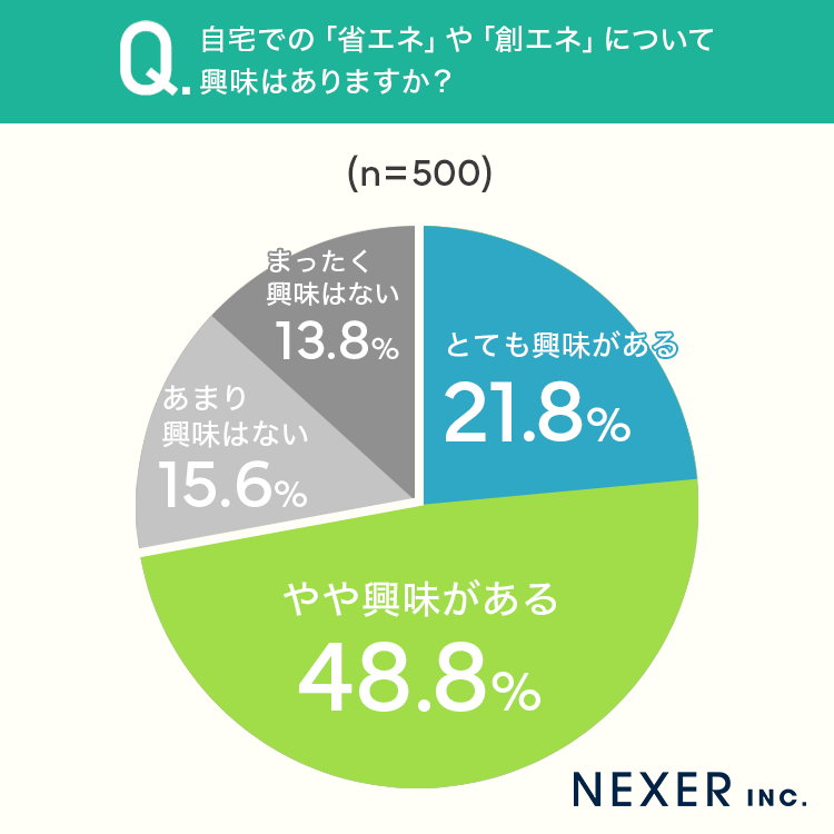 続いて、自宅での「省エネ」や「創エネ」への興味について聞いてみました。