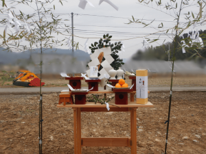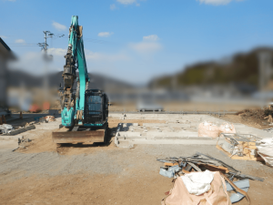 report 石巻市K様邸新築工事2026.4.18地盤改良工事 suzuki-kankyo 2026年4月20日 地盤改良工事 環境パイルS工法 地鎮祭 工事の安全・完成した家の繁栄祈願 解体工事 整地作業